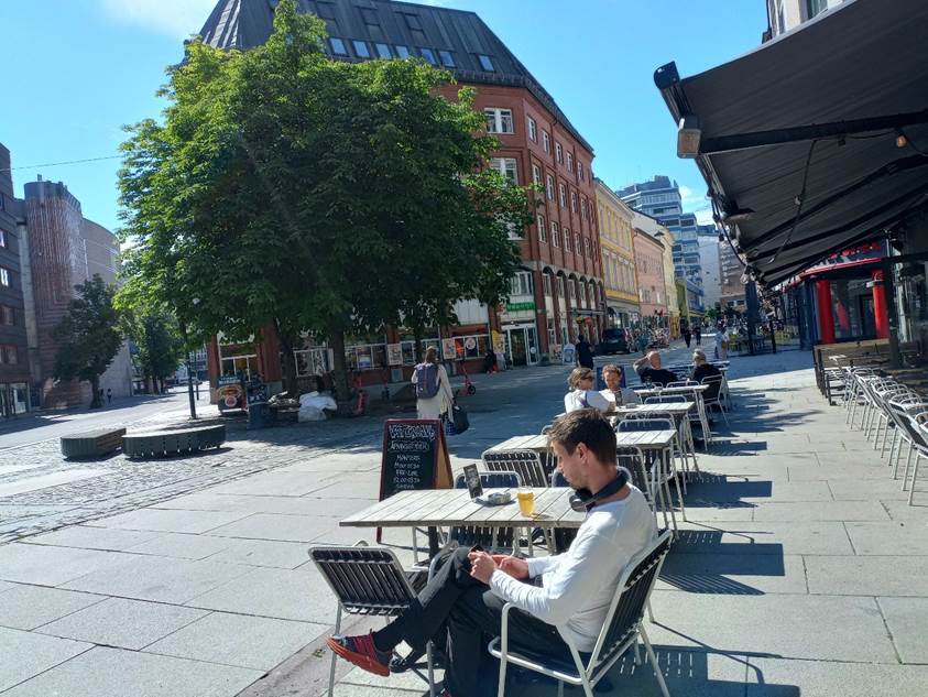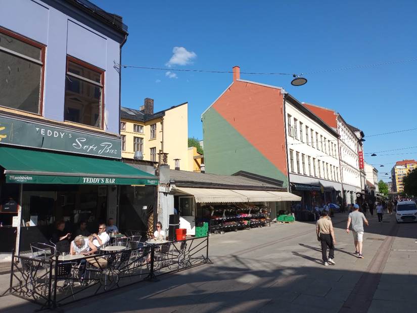 Skyline vises med røde prikker. Vaterland Bar og Scene har litt