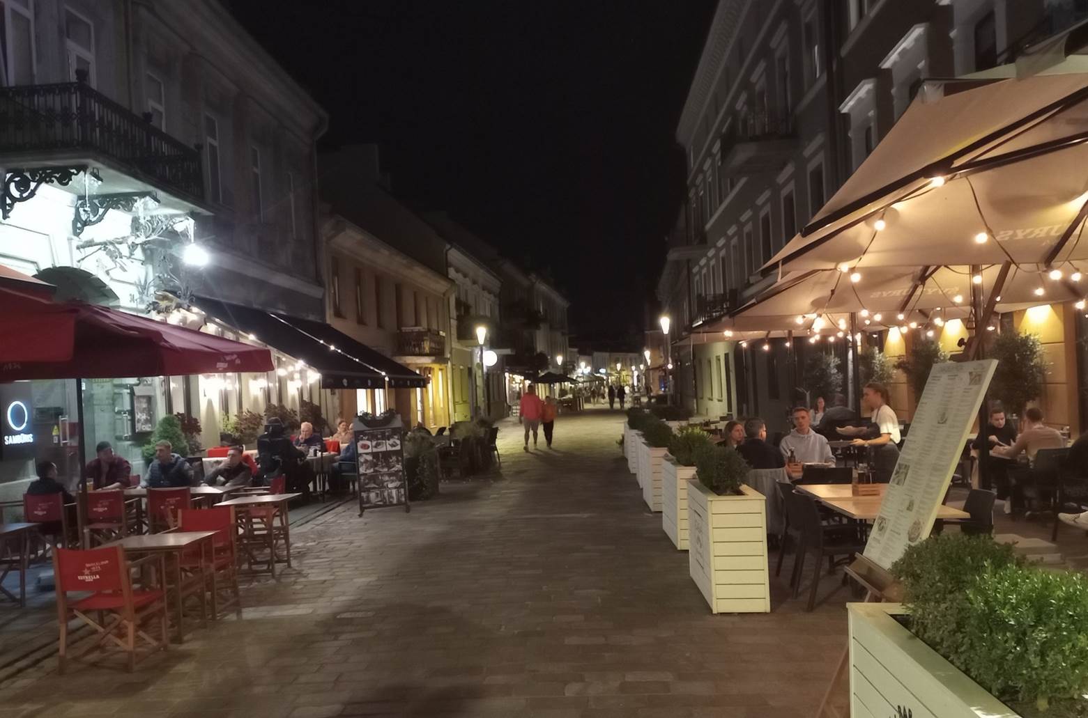 Kaunas City Hotel med fin balkong mot stille gågate og spiste middag i den