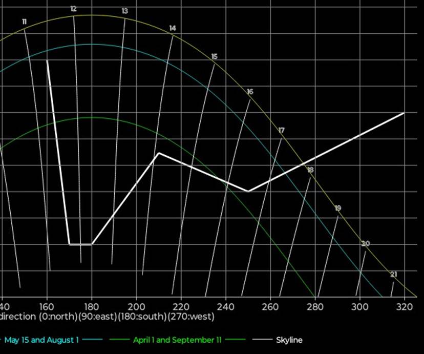 Lesing av diagrammet: Omkring 22/6 blir sola