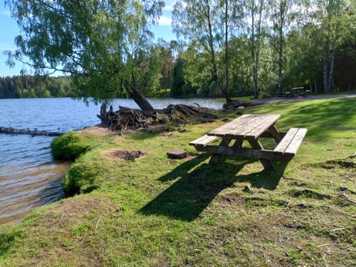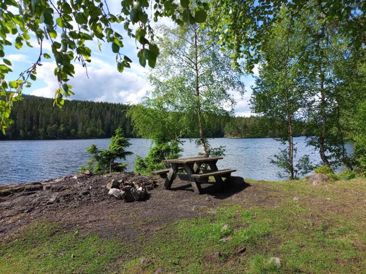 like nord for bålplassen med benk blir sola borte en anelse tidligere: