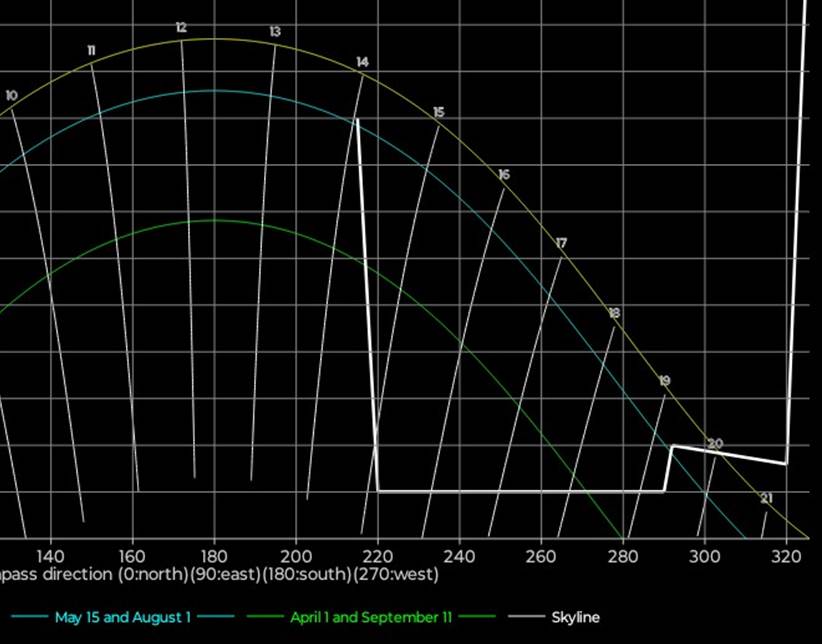vinkelhøyden for stedets ‘skyline’, dvs toppen av bygninger og trær sett