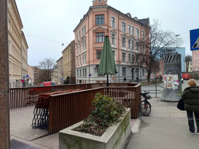 gjelder langs veggen på høyre side. Siden er plassen i forgrunnen