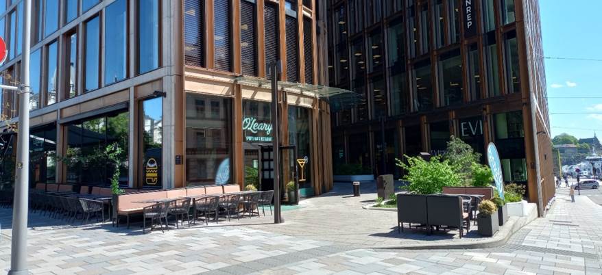 viser at sola varer til kl 18 midtsommers. The Old Irish Pub, 8.