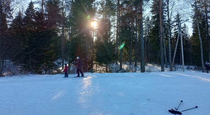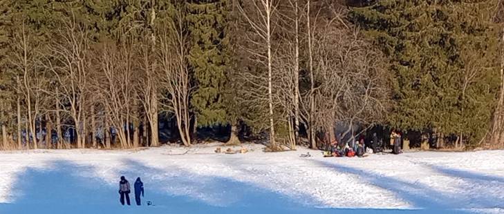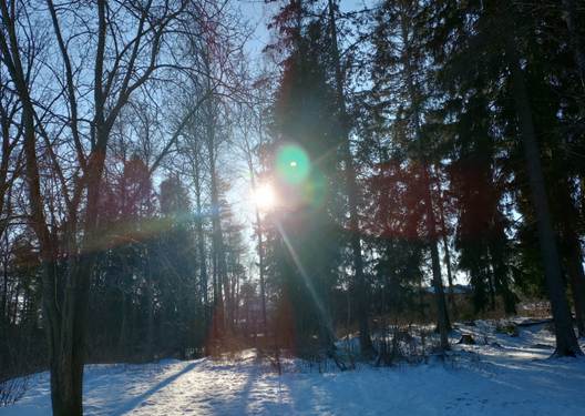 desember og januar er den mindre. Men skyggeeffekten av trær, dvs sollystapet, er der da også. På Grindajordet 9. februar (det øverste bildet) var den fine