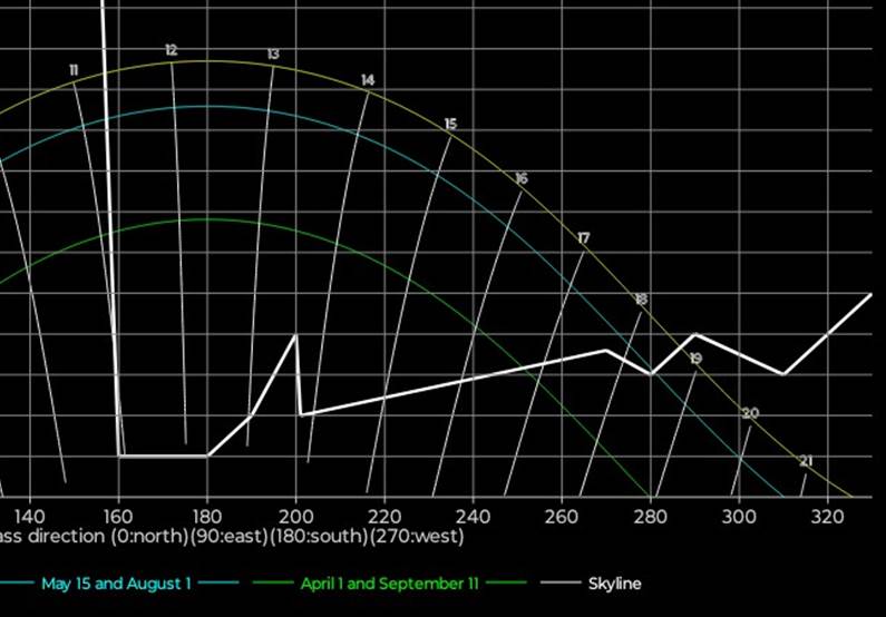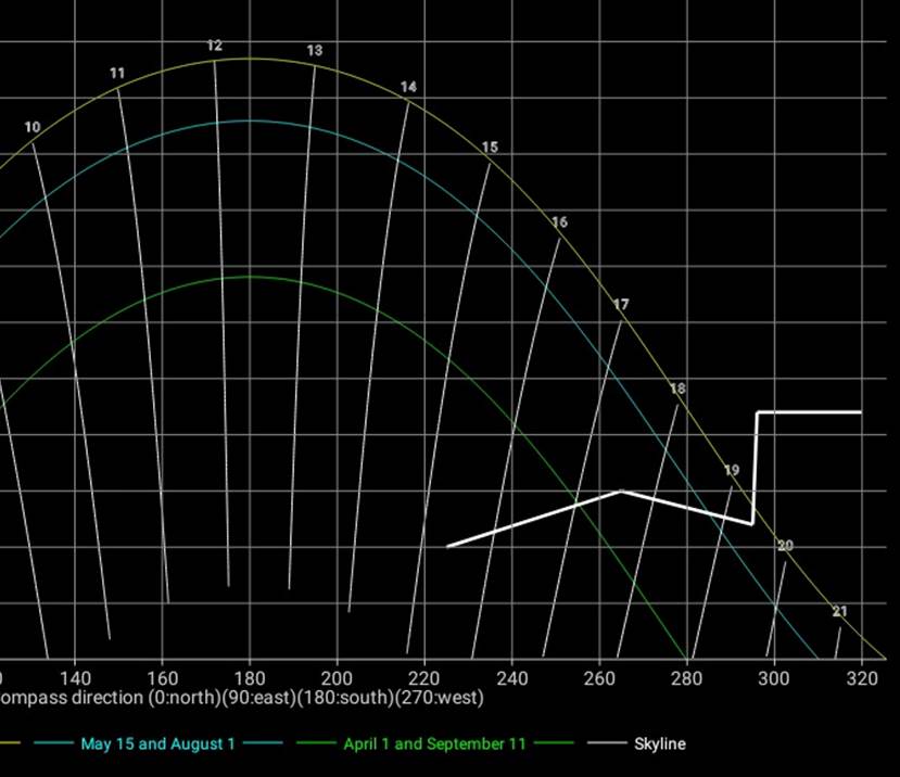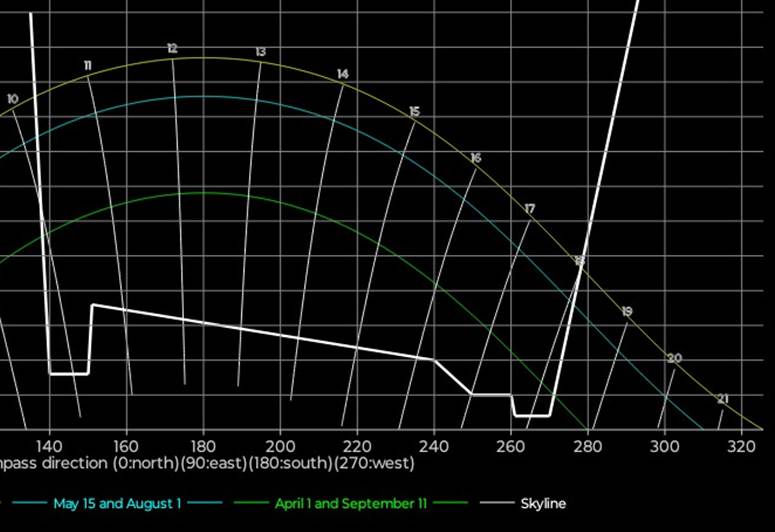 vinkelhøyden for stedets ‘skyline’, dvs toppen av bygninger og trær sett