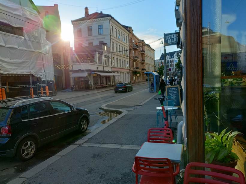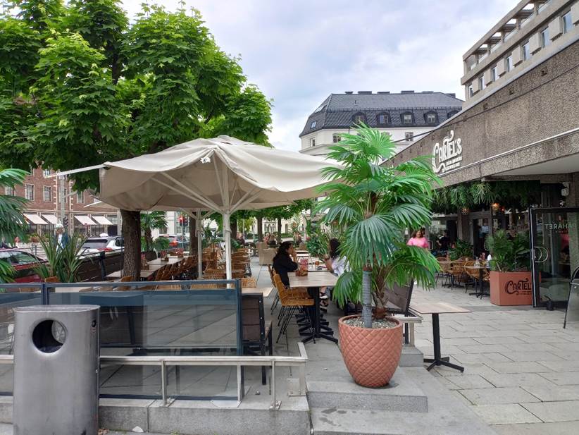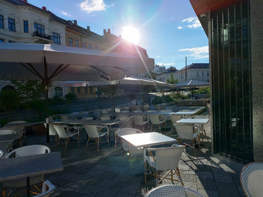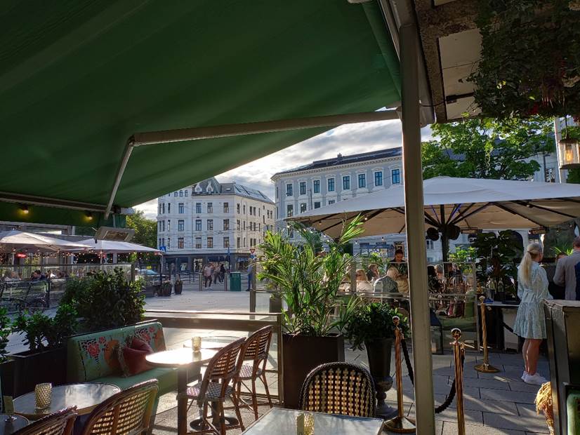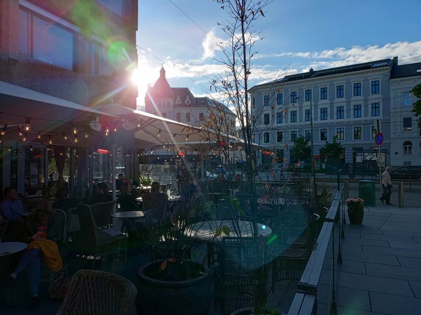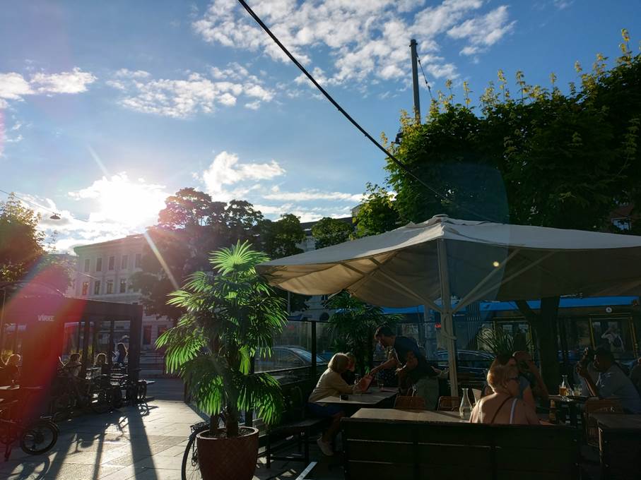 Mye parasoller på Solli plass. Soltilgang er svært seteavhengig.